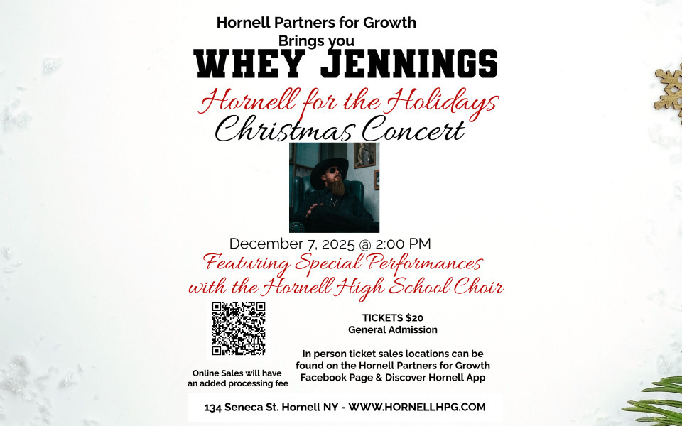 With classic Christmas favorites, Whey Jennings’ signature originals, and community spirit shining through, this concert is set to become one of Hornell’s most cherished holiday traditions.