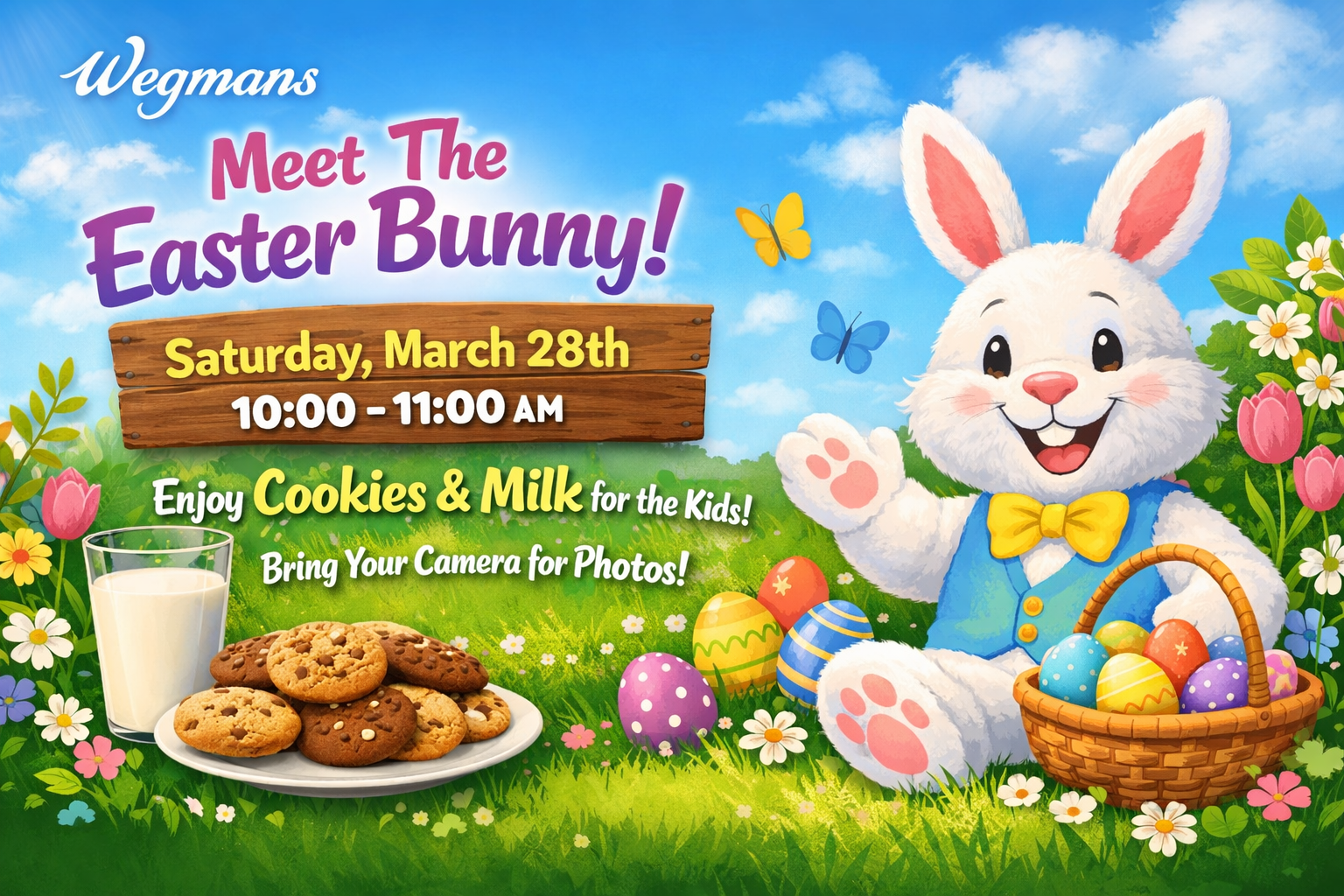 Stop by and meet the Easter Bunny at Hornell Wegmans on March 28, from 10 am to 11 am. They will be offering cookies and milk to the kids as well as an opportunity for parents to take pictures